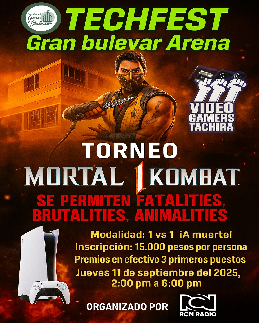 ¿Eres lo suficientemente valiente para enfrentar el desafío más brutal y legendario?El Gran Bulevar Arena te invita a participar en el torneo donde solo los guerreros más audaces y hábiles lograrán sobrevivir. ¡Demuestra tu destreza en combates intensos, donde cada movimiento puede ser la diferencia entre la victoria o una FATALITY definitiva!Prepara tus mejores combos, domina tus personajes favoritos y lánzate a la batalla más épica del año.Solo los más fuertes y estratégicos podrán avanzar y alzarse con la gloria absoluta.📋 Formulario de inscripción y reglamentos disponibles en el siguiente enlace.